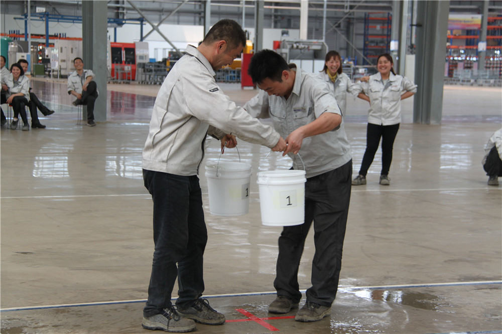 下午13:30在運(yùn)動(dòng)場(chǎng)出現(xiàn)了擺放有序的水桶,這是我們的第二項(xiàng)活動(dòng):精益運(yùn)輸大接力,取水點(diǎn)的距離分別大于等于10米,每個(gè)桶分別裝滿10L水,每組隊(duì)員是五個(gè)人,要在120秒內(nèi)完成大桶水量的收集,超過(guò)120秒的隊(duì)員淘汰出局,在規(guī)定的時(shí)間內(nèi),水量收集多者獲勝,抽簽決定出場(chǎng)順序,這項(xiàng)活動(dòng)是讓員工明白精益化生產(chǎn)體系的精髓所在之處;減少過(guò)程浪費(fèi),實(shí)現(xiàn)低成本的快速交付,滿足客戶的同時(shí),做到細(xì)節(jié)控制,提升產(chǎn)品使用價(jià)值,提升公司盈利空間。比賽開(kāi)始了只見(jiàn)隊(duì)員雙手提起20L的水往下一站的隊(duì)友那里送,中間會(huì)有灑水會(huì)很累,但是每個(gè)人都為了自己隊(duì)伍的榮譽(yù)拼盡全力向終點(diǎn)奔去,旁邊的隊(duì)友為他們加油、吶喊,最終自焊獲得第一名。